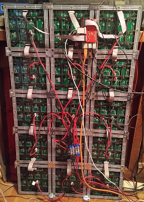 I have written two programs to test LED panels after someone sold me a pile of them with many bad LED's. Some panels had over 30 LED's that were not working. He also shipped them with no padding between the LED's! This resulted in smashed LED's and some of the alignment nubs were broken off. Fortunatly with some soldering I was able to reduce the number of bad LED's to 3 or 4 per panel. Now I can use them for testing out programs and configurations. Some LED's had broken runs but most of them just needed to be resoldered.